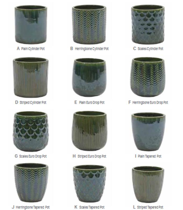 CYLINDER POT w/SAUCER ALFRESCO BAY BLUE, LAKE BLUE, SAGE, TAUPE 4.75"W x5"H