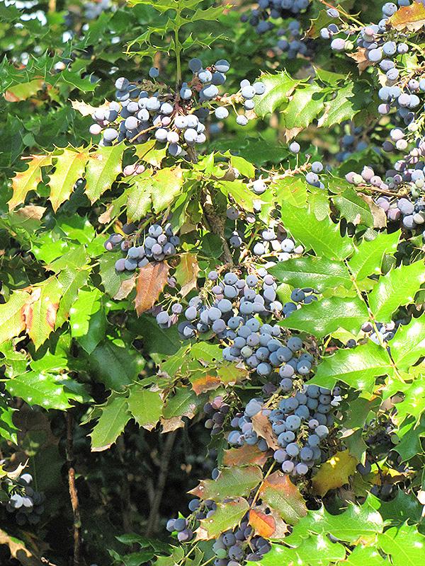 Oregon Grape is primarily grown for its highly ornamental fruit. It features an abundance of magnificent blue berries from mid summer to early fall. It features showy racemes of fragrant yellow flowers hanging below the branches in early spring. It has dark green evergreen foliage which emerges burgundy in spring. The spiny pinnately compound leaves turn an outstanding coppery-bronze in the fall, which persists throughout the winter.
