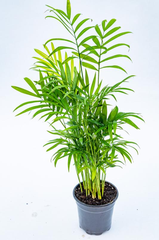 This palm thrives in moderate light and is known for its ability to adapt to various indoor conditions. Its lush, green foliage can grow up to 3 feet tall, making it an ideal choice for tabletops or as a floor plant.