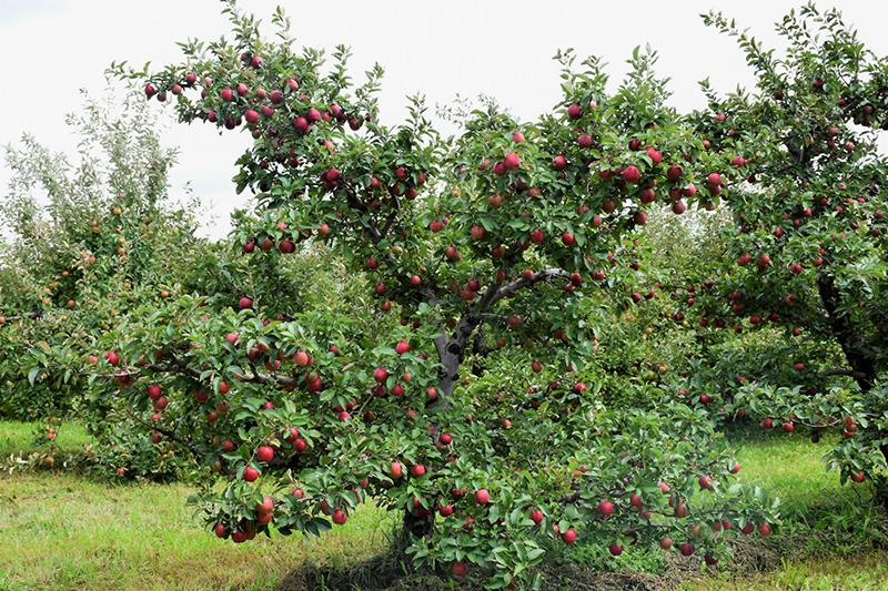 Red Delicious Apple is a small tree that is commonly grown for its edible qualities. It produces large dark red round apples (which are botanically known as 'pomes') with creamy white flesh which are usually ready for picking from late summer to early fall. The apples have a sweet taste and a crisp texture.