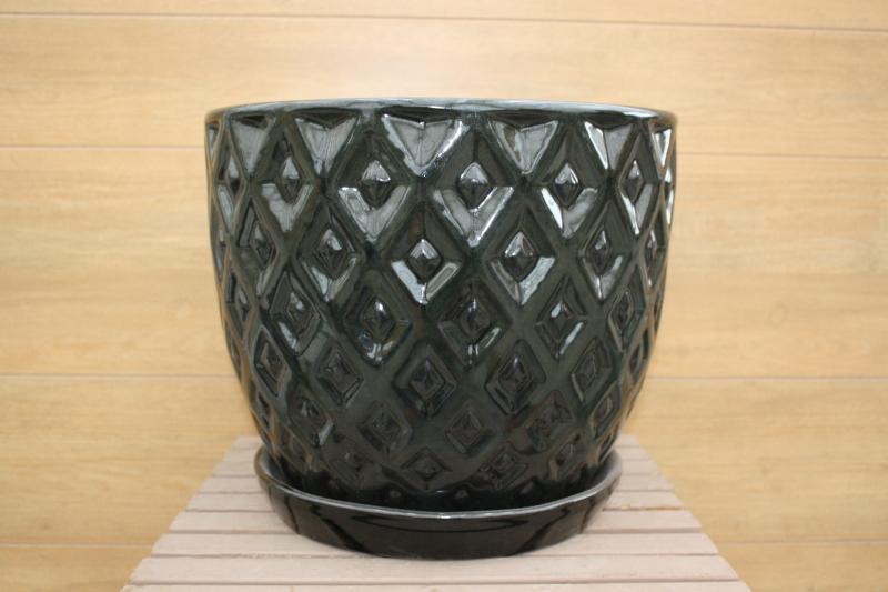 Enhance your outdoor space with the 12" Amelia Planter WS. Available in three stylish varieties - Diamond, Stripe, and Dot - and three beautiful colors - Jade, Black, and Blue. This planter is the perfect addition to your garden or patio. Made of high-quality materials, this planter is durable and built to last. Add a touch of elegance to your outdoor decor with the Amelia Planter WS.