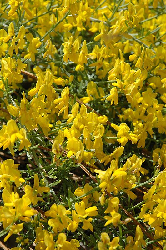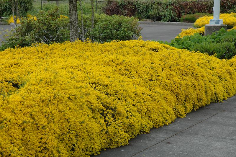 A gracefully low-spreading groundcover which is drenched in bright yellow flowers along upright stems for a long period in spring, very fine texture; requires full sun and well-drained low fertility soil, the ultimate choice for poor dry soils