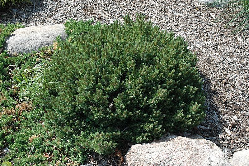 One of the very smallest of the dwarf pines, this variety develops its extremely dense and compact mounded shape very slowly over many years, also has very short needles; a superb choice for miniature effect in rock or alpine gardens