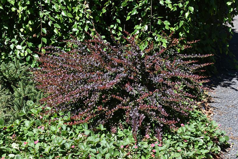 Lava Nugget™ Barberry will grow to be about 3 feet tall at maturity, with a spread of 3 feet. It tends to fill out right to the ground and therefore doesn't necessarily require facer plants in front. It grows at a fast rate, and under ideal conditions can be expected to live for approximately 20 years.