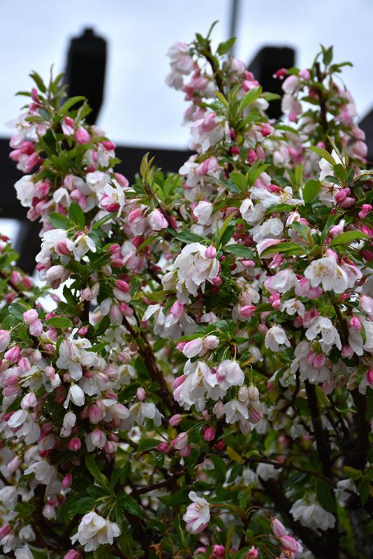 Sparkling Sprite® Flowering Crab will grow to be about 12 feet tall at maturity, with a spread of 12 feet. It tends to be a little leggy, with a typical clearance of 3 feet from the ground, and is suitable for planting under power lines. It grows at a medium rate, and under ideal conditions can be expected to live for 50 years or more.