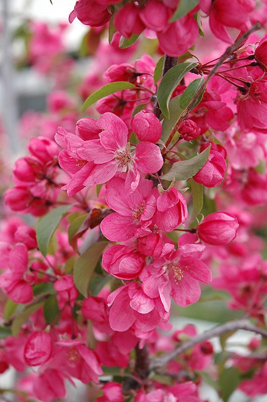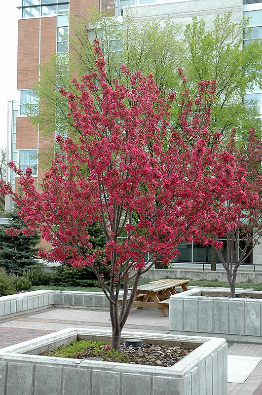 One of the most cherished ornamentals, simply smothered in deep pink flowers in spring followed by persistent bright red fruit in fall; an exceptional accent tree for smaller home landscapes, needs well-drained soil and full sun