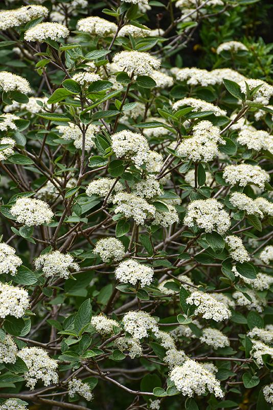 An exceptional landscape shrub, featuring flat-topped clusters of creamy white flowers in spring and fruit which starts brilliant red changing to black in fall, extremely ornamental; dense, upright and compact, a beautiful choice for the shrub border