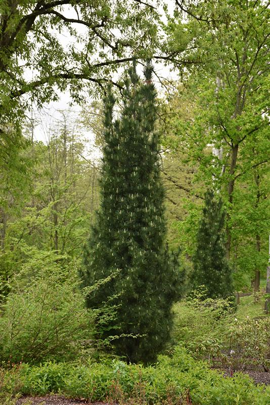 Stowe Pillar White Pine is primarily valued in the landscape for its rigidly columnar form. It has bluish-green evergreen foliage which emerges creamy white in spring. The needles remain bluish-green throughout the winter. The furrowed gray bark adds an interesting dimension to the landscape.