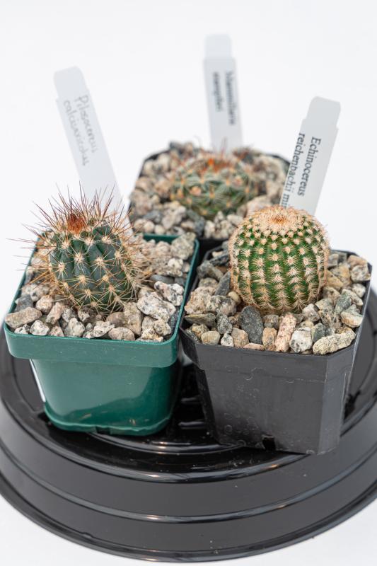 The Crump variety of cactus is a striking addition to any collection, known for its unique shape and resilience, and also comes with a name tag identifying each species. Cacti are well-regarded for their ability to thrive in arid conditions, making them a low-maintenance choice for both novice and experienced plant enthusiasts.