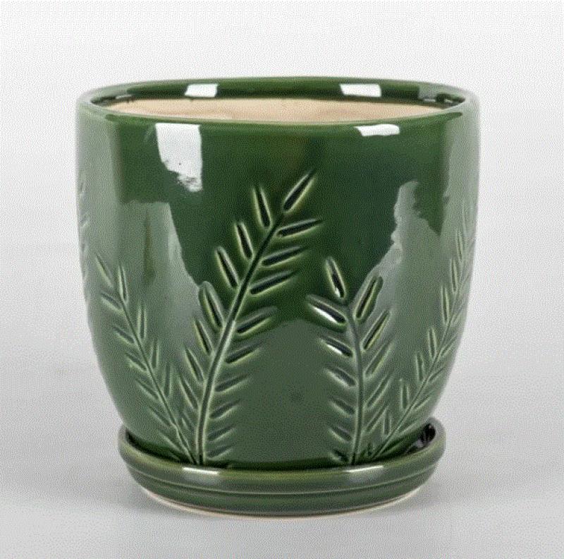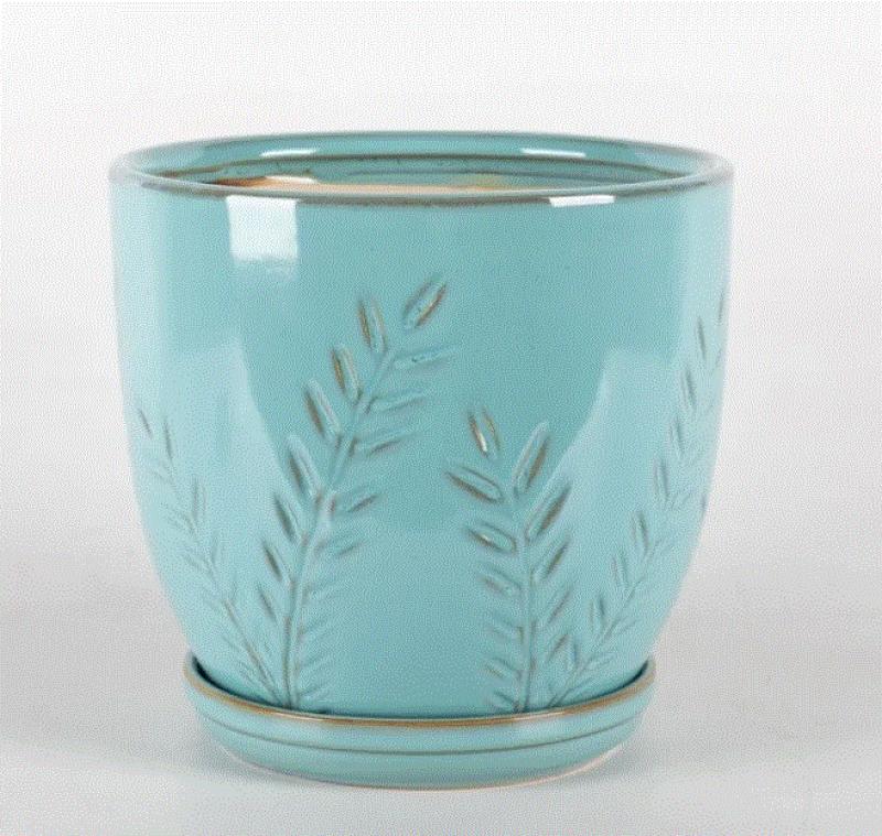 Naomi Planter W/saucer Bc Border Concepts Jungle Green White, Denim Blue