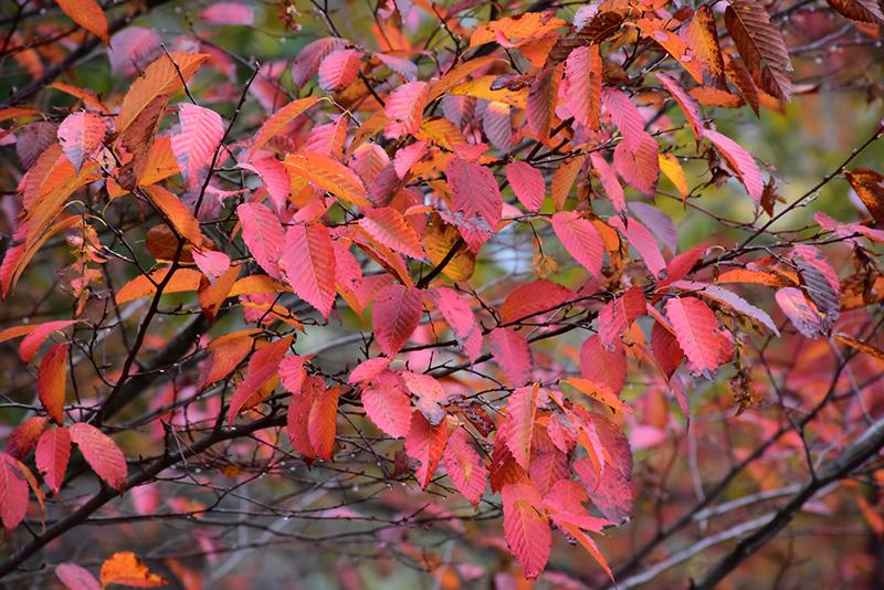 A beautiful and underused native woodland tree; very interesting gray bark is almost muscular in appearance, makes a strong winter statement; also excellent blend of fall colors and curious hop-like fruit; good small multipurpose shade tree