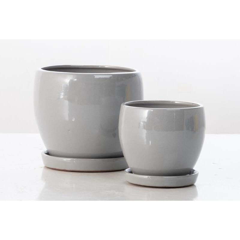This 6" Nicola planter with saucer is the perfect addition to your space. The attached saucer helps prevent water from leaking onto your surface area, making it easy to maintain your plants. Add a touch of style to your space with this practical and attractive planter.