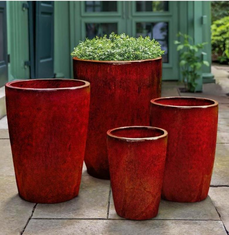 This Ojai planter from Campania planter in Barolo Red is a stylish and durable addition to any garden or outdoor space. The vibrant Barolo Red color adds a pop of color to your garden, while the classic design complements any style of decor.