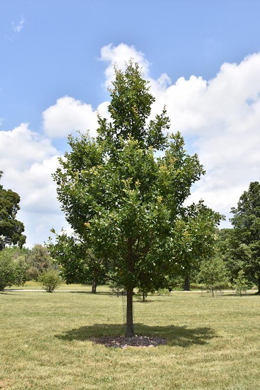 A large growing and stately hybrid oak with a consistent upright habit of growth and a strong central leader, typically low-branched, best for larger landscapes where it will have room to grow; extremely tough, faster growing than other oaks