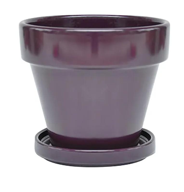 Pot 4.5" W/saucer Glazed Border Concepts White, Purple, Paprika, Eggplant 4.5"W x 4.25"H