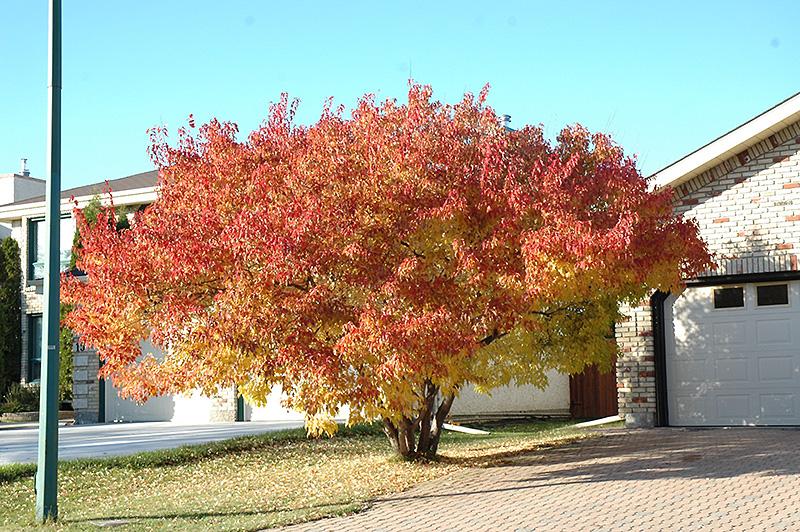 The perfect ornamental tree for smaller home landscapes with incredible fall colors ranging from orange to scarlet and burgundy red, neat habit and colorful seeds in late summer; multi-stemmed selection is wide spreading and artistic when mature