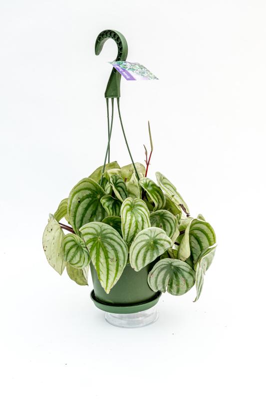 The Peperomia Watermelon is a captivating houseplant known for its striking foliage. Its leaves feature a unique pattern that resembles the surface of a watermelon, showcasing a blend of deep green and silver stripes. This visual appeal makes it an excellent choice for adding texture and interest to indoor spaces.
