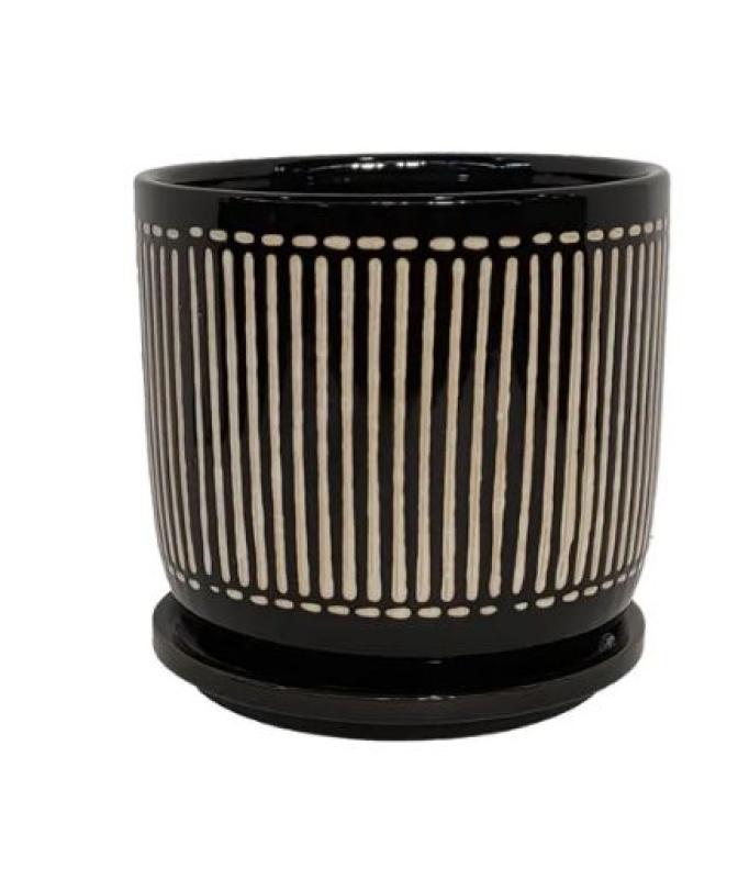 The 4.5" Minnetonka Pot features a minimalist aesthetic, showcasing a classic charcoal on white or white-on-white pattern that adds a touch of elegance to any setting. The included saucer ensures that excess water is captured, protecting your surfaces and making maintenance effortless.