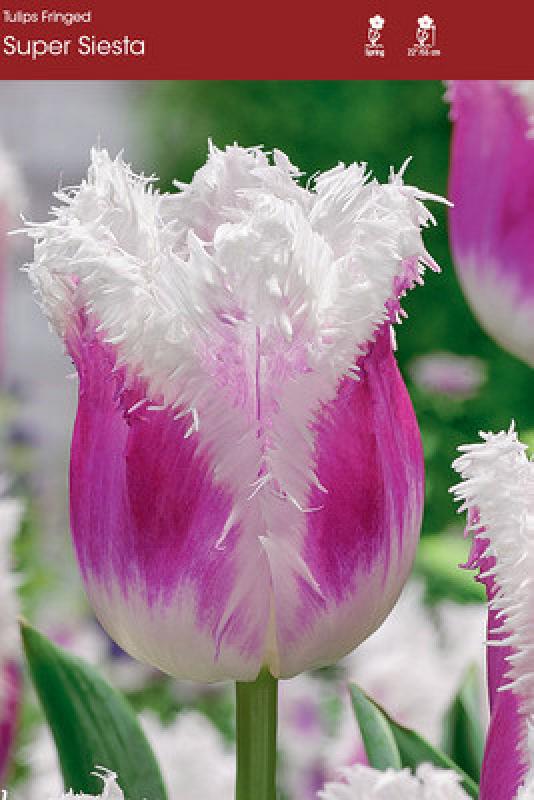 The Tulip Fringed 'Super Siesta' is a captivating addition to any garden, showcasing unique petals with delicate fringed edges that create an eye-catching display. This variety features vibrant colors that blend beautifully, enhancing the overall aesthetic of your outdoor space.