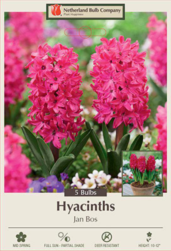 The Hyacinth 'Jan Bos' is a stunning addition to any garden, known for its rich, fragrant blooms that add a delightful touch of elegance. Each package contains 5 bulbs, making it easy to create a cohesive display or to intersperse among other plants.