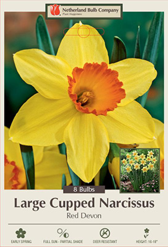 Narcissus 'Red Devon' is a striking addition to any floral arrangement or garden display. Known for its vibrant and eye-catching appearance, this variety showcases beautiful blooms that feature a unique blend of creamy yellow petals with a stunning red cup. The contrast in colors adds depth and visual interest, making it a standout choice for enthusiasts and casual gardeners alike.