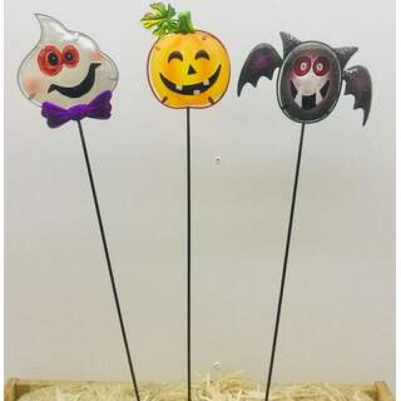 Add a festive touch to your seasonal decor with the Pumpkin/Bat/Ghost Pick. This charming garden accessory features a delightful assortment of Halloween-themed designs, including a classic pumpkin, a whimsical bat, and a friendly ghost.