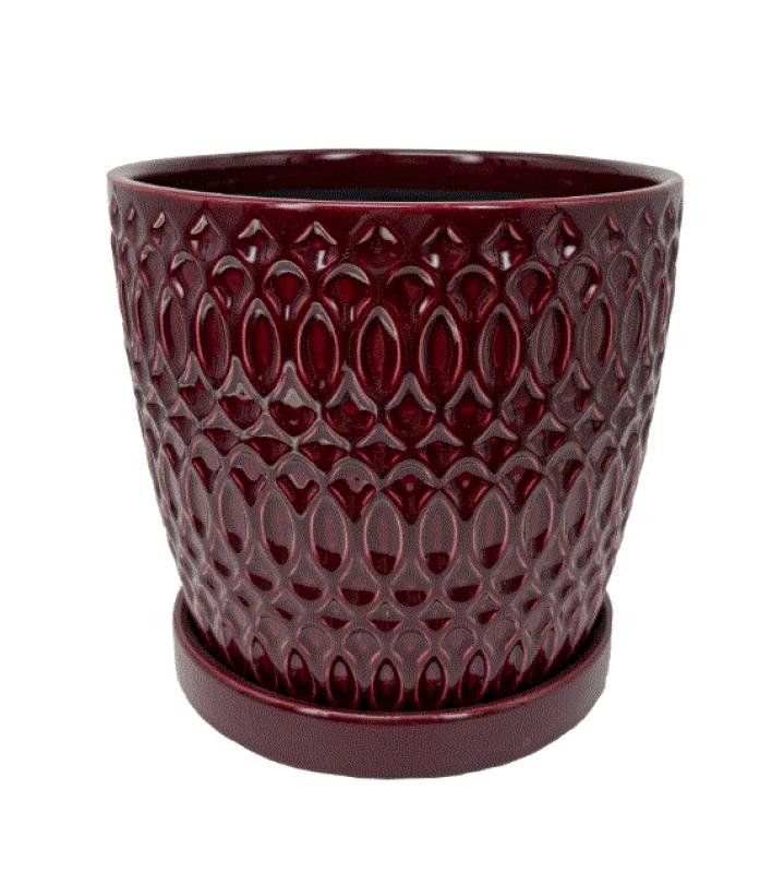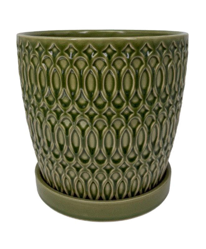 Enhance your plant display with the 7.5" Nouvelle Scrolled Planter from BORDER CONCEPTS. This planter features an elegant scrolled design that adds a touch of sophistication to any setting. This planter comes with an attached saucer.