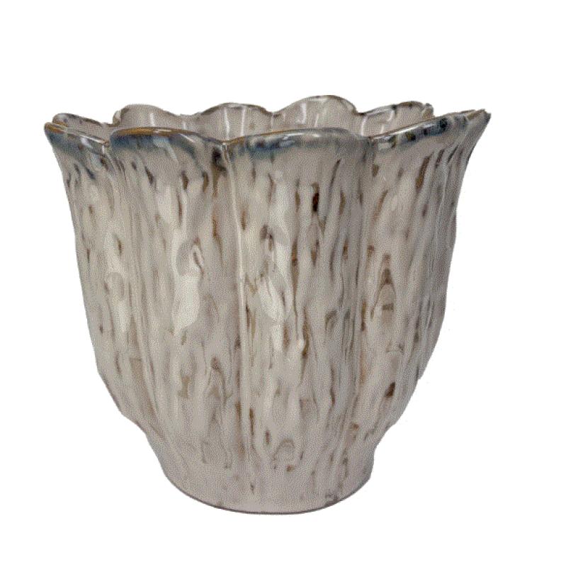 PIROUETTE SCALLOP RIM PLANTER BORDER CONCEPTS FLECKED COTTON 6.5"W x 6"H