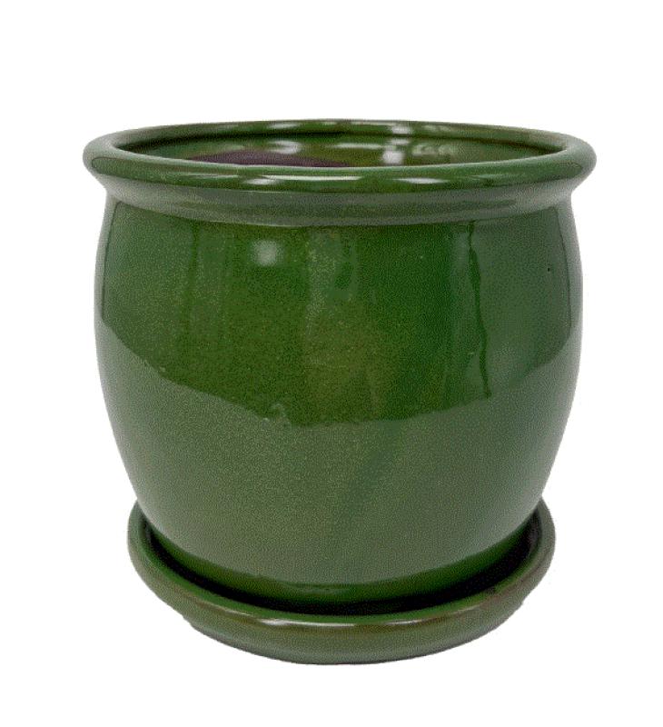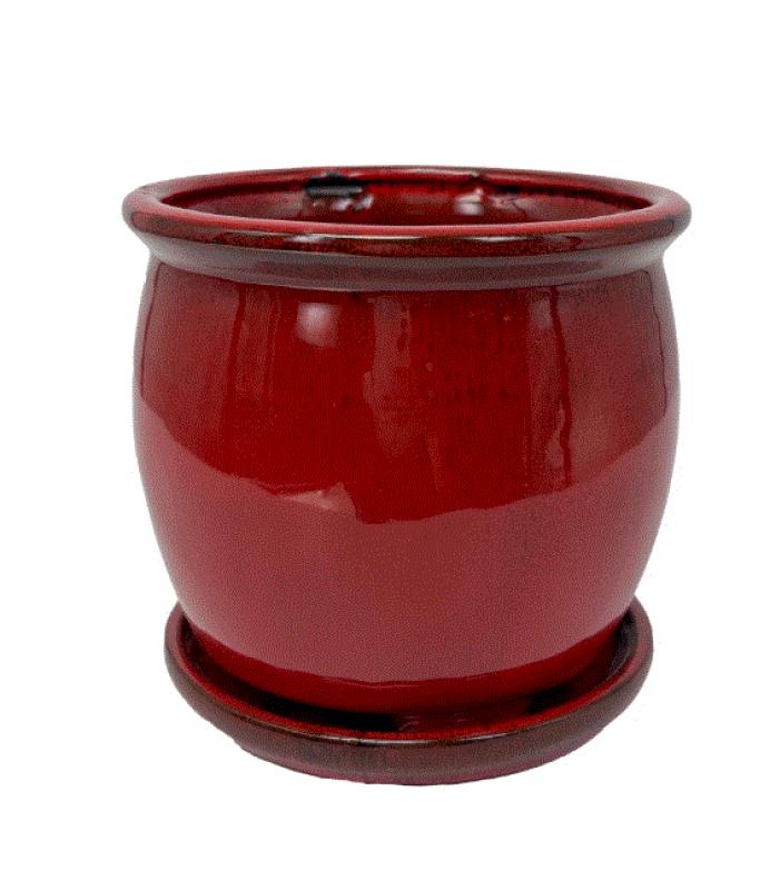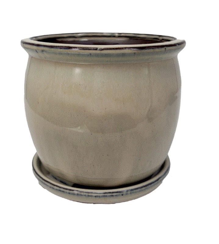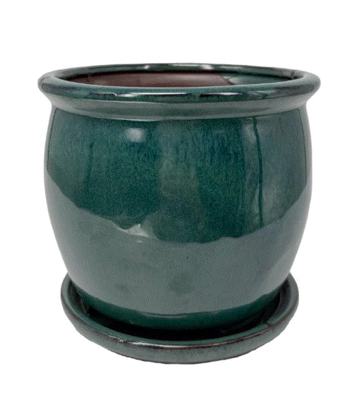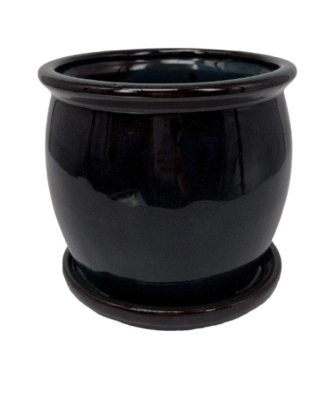 Rimmed Bell Pot W/saucer Border Concepts Beige, Bllue, Green, Red Dk Blue 5.5"W x 5.25"H