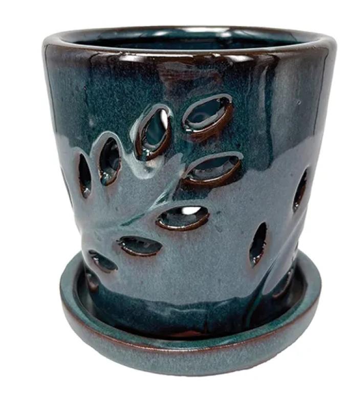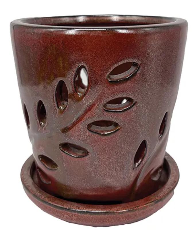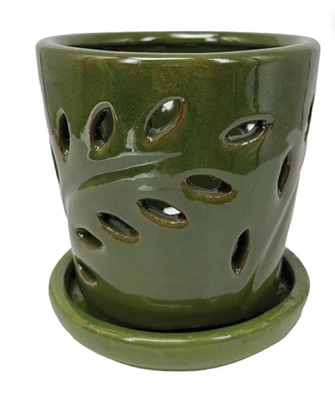 The 5" Fern Frond Orchid Pot with Saucer is designed to provide an ideal growing environment for your orchids. Crafted with high-quality materials, this pot combines durability with an elegant aesthetic, making it a suitable choice for any setting.