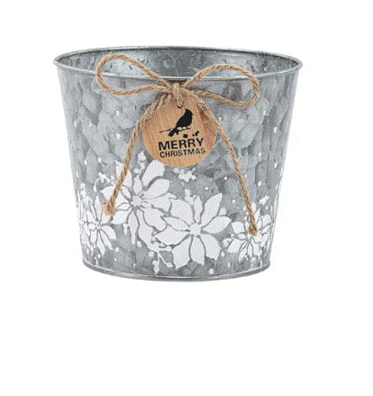This Metal Pot with White Embossed Poinsettia from Napco is a stylish addition to any collection. Made from durable metal, this pot features a beautifully embossed design of a classic poinsettia, adding a touch of elegance and sophistication.