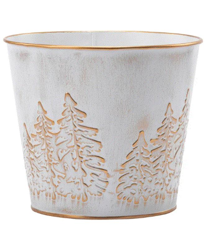 Enhance your space with the White Embossed Tree Potcover from NAPCO. This elegantly designed potcover features a subtle embossed pattern that adds texture and sophistication to any setting.