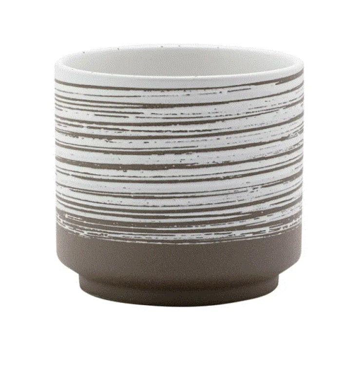 The BROWN/WHITE STRIPE PLANTER from NAPCO combines functionality with a stylish aesthetic.