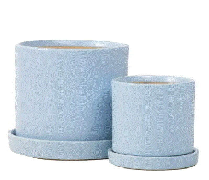 Audrey Planter W/saucer Campania Blk, Wh, Lt Grn, Lt Bl