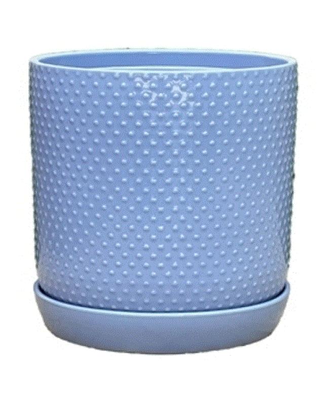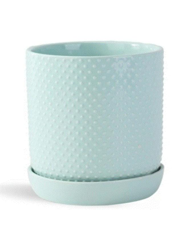 This dotted cylinder is a stylish addition to any plant collection, featuring a unique dotted texture that adds visual interest. The soft color palette of pink, white, lavender, and green harmonizes beautifully, making it a versatile piece for various decor styles.