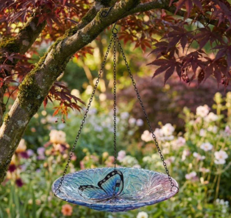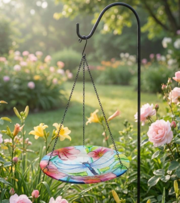 Hanging Glass Bird Feeder Continental Art Butterfly-dragonfly 12"X12"x17"